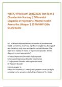 NR 547 Final Exam 2025/2026 Test Bank | Chamberlain Nursing | Differential Diagnosis in Psychiatric–Mental Health Across the Lifespan | 50 PMHNP Q&A Study Guide