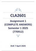 CLA2601 Assignment 1 (COMPLETE ANSWERS) Semester 1 2025 (770912) - DUE 7 April 2025