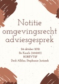 Notitie omgevingsrecht adviesgesprek. Ondersteuning voor het adviesgesprek zelf. AWB, Wabo en Bor komen aan bod. Ook de omgevingsvergunningen.