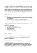 a number of lecture notes from sport & exercise psychology module, including exam questions & answers given (grade A achieved), affect, interviews, essential skills for practitioners & practitioner philosophy