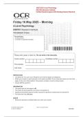 Prepare thoroughly with the 2025 OCR A Level Psychology H567/01 Research Methods question paper with marking scheme. This resource provides complete exam questions, accurate answers, and detailed marking guidance, covering key topics such as experimental design, sampling, data collection, ethical issues, reliability, validity, quantitative and qualitative methods, and statistical analysis in psychology research. Ideal for A Level Psychology students, teachers, and tutors, it supports exam practi...