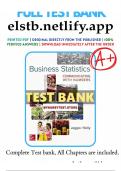 P71 En esta página, encontrarás todos los documentos, paquetes y tarjetas que ofrece el vendedor p71. 88 Documentos 0 Tarjetas de estudio 1 Paquetes Community 0 Seguidores 0 Siguiendo 90 artículos Todo Documentos Tarjetas de estudio Paquetes Lo más vendido El más nuevo Puntuación Introduction to Maternity and Pediatric Nursing 9th Edition by Gloria Leifer – Complete Test Bank with Practice Questions and Answers for All Chapters (0) $18.49 0x vendido This document contains the complete test bank for Introduction to Maternity and Pediatric Nursing (9th Edition) by Gloria Leifer. It includes a wide range of exam-style questions with answers covering key topics such as maternal health, pregnancy care, labor and delivery, newborn assessment, pediatric growth and development, and common childhood conditions. The material is designed to help nursing students review essential concepts, practice exam questions, and prepare effectively for maternity ... i x Examen • 664 páginas • por p71 • subido 2026 Vista rápida i x Introduction to Maternity and Pediatric Nursing 7th Edition by Leifer • Introduction to Maternity and Pediatric Nursing 7th Edition by Leifer Microbiology: An Introduction 14th Edition by Gerard J. Tortora, Berdell R. Funke & Christine L. Case – Complete Test Bank with Practice Questions and Answers for Chapters 1–28 (0) $18.49 0x vendido This document contains the complete test bank for Microbiology: An Introduction (14th Edition) by Gerard J. Tortora, Berdell R. Funke, and Christine L. Case. It includes exam-style questions and answers covering Chapters 1–28, focusing on microbial structure and function, metabolism, genetics, microbial growth, immunology, infectious diseases, and microbiological laboratory concepts. The material is designed to help students review essential microbiology topics, practice exam questions, and pr... i x Examen • 988 páginas • por p71 • subido 2026 Vista rápida i x microbiology • microbiology Microbiology: An Introduction 13th Edition by Gerard J. Tortora, Berdell R. Funke & Christine L. Case – Complete Test Bank with Practice Questions and Answers for Chapters 1–28 (0) $18.49 0x vendido This document contains the complete test bank for Microbiology: An Introduction (13th Edition) by Gerard J. Tortora, Berdell R. Funke, and Christine L. Case. It includes exam-style questions and answers covering Chapters 1–28, focusing on microbial structure and function, metabolism, genetics, microbial growth, immunology, infectious diseases, and laboratory techniques. The material is designed to help microbiology students practice key concepts, reinforce understanding, and prepare effectivel... i x Examen • 986 páginas • por p71 • subido 2026 Vista rápida i x microbiology • microbiology Seidel’s Guide to Physical Examination 10th Edition by Jane Ball, Joyce Dains, John Flynn, Barry Solomon & Rosalyn Stewart – Complete Test Bank with Practice Questions and Answers (0) $18.49 0x vendido This document contains the complete test bank for Seidel’s Guide to Physical Examination (10th Edition) by Jane Ball, Joyce Dains, John Flynn, Barry Solomon, and Rosalyn Stewart. It includes exam-style questions with answers covering key topics such as patient assessment, health history, diagnostic reasoning, and systematic physical examination of body systems. The material is designed to help nursing and healthcare students review essential clinical assessment concepts and prepare effectively... i x Examen • 590 páginas • por p71 • subido 2026 Vista rápida i x nursing • nursing Business Statistics: Communicating with Numbers 2nd Edition by Sanjiv Jaggia & Alison Kelly – Complete Test Bank with Practice Questions and Solutions for All Chapters (0) $13.49 0x vendido This document contains the complete test bank for Business Statistics: Communicating with Numbers (2nd Edition) by Sanjiv Jaggia and Alison Kelly. It includes a wide range of exam-style questions with solutions covering key statistical concepts such as descriptive statistics, probability, distributions, sampling, hypothesis testing, regression analysis, and data interpretation. The material is designed to help students practice statistical problem-solving and prepare effectively for business sta... i x Examen • 304 páginas • por p71 • subido 2026 Vista rápida i x business statistics • business statistics Contemporary Practical/Vocational Nursing 9th Edition by Suzanne C. Kurzen – Complete Test Bank with Practice Questions and Verified Answers (0) $18.49 0x vendido This document contains the complete test bank for Contemporary Practical/Vocational Nursing (9th Edition) by Suzanne C. Kurzen. It includes a wide range of exam-style questions and answers covering key nursing topics such as patient care, pharmacology, infection control, nursing procedures, medical terminology, and clinical decision-making. The material supports practical and vocational nursing students preparing for exams and strengthening their understanding of essential nursing concepts acros... i x Examen • 165 páginas • por p71 • subido 2026 Vista rápida i x contemporary • contemporary Nursing Research in Canada 5th Edition by Mina Singh – Complete Test Bank with Exam Questions and Verified Answers for All Chapters (0) $12.99 0x vendido This document contains the complete test bank for Nursing Research in Canada (5th Edition) by Mina Singh. It includes exam-style questions and answers covering all chapters, focusing on key topics such as research methods, evidence-based practice, quantitative and qualitative research, data analysis, ethics in research, and interpretation of research findings in nursing. The material is designed to support nursing students in exam preparation, practice testing, and strengthening their understand... i x Examen • 261 páginas • por p71 • subido 2026 Vista rápida i x Nursing Research in Canada 5th Edition by Mina Sin • Nursing Resear