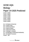 It provides authentic exam-style questions used in the assessment, making it an excellent resource for revision and practicing GCSE Biology exam techniques. i x Examen • 26 páginas • por p71 • subido 2026 Vista rápida i x GCSE • BIOLOGY AQA GCSE Biology biology paper 1 higher tier GCSE biology predicted paper cell biology revision infection and response biology (0) $8.49 0x vendido This document is a predicted exam guide for the AQA GCSE Biology Paper 1 Higher Tier (1H) for the 2025 exam series. It covers the most likely exam topics from the Paper 1 specification, including cell biology, organisation, infection and response, and bioenergetics.