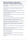 WGU D125 Math for Elementary Educators 1 Solved 100% Correct!!
