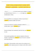 This document is a comprehensive study guide for the CLEET (Council on Law Enforcement Education and Training) final exam in Oklahoma. It includes 100 practice questions with their corresponding answers covering topics such as criminal law, traffic enforcement, ethics, firearms safety, emergency procedures, search and seizure, and community policing. The material is ideal for ...