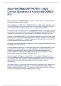 AQA PSYCHOLOGY PAPER 1 2024 Correct Questions & Answers(SCORED A+)
