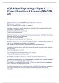 AQA A level Psychology - Paper 1 Correct Questions & Answers(GRADED A+)