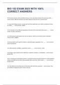 BIO 152 EXAM 2023 WITH 100% CORRECT ANSWERS