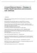 A-Level Edexcel History - Changes in Public Health Questions and Answers well Definied