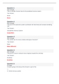 BIOLOGY 245 Anatomy and Physiology; AP II - Module 1 Exam Graded A (Complete solution) LATEST Question 1 2.5 / 2.5 pts This is a bundle of axons found in the peripheral nervous system. Your Answer : Nerve Nerve Question 2 2.5 / 2.5 pts This part of the autonomic system accelerates the heart beat and increases breathing rate. Your Answer: Sympathetic Nervous System Sympathetic Question 3 2.5 / 2.5 pts The ventral root of a nerve contains what type of neurons? Your Answer: Motor Motor (Efferent) Q...
