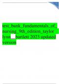 Test Bank Fundamentals Of Nursing 9th Edition Taylor Lynn Bartlett 2023 Updated Version Graded A+