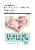 Test Bank for Safe Maternity & Pediatric Nursing Care 1st Edition by Luanne Linnard-Palmer & Gloria Haile Coats ISBN 9780803624948 Chapter 1-40 | Complete Guide A+. Contents: I. Introduction of Maternity and Pediatric Nursing Chapter 1. Healthy People 2020 and Initiatives for Healthy Families II. Pregnancy and The Family Chapter 2. Introduction to Maternity Nursing Chapter 3. Human Reproduction and Fetal Development Chapter 4. Physical and Psychological Changes of Pregnancy Chapter 5. Antepartal...