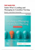 TEST BANK FOR YODER-WISE’S LEADING AND MANAGING IN CANADIAN NURSING, 2ND EDITION, PATRICIA S. YODER-WISE, JANICE WADDELL, NANCY WALTON, ISBN: 1684, ISBN: 1745, ISBN: 1677 Table of Contents Part I: Core Concepts Overview 1. Leading, Managing, and Following 2. Developing the Role of Leader 3. Developing the Role of Manager 4. Nursing Leadership and Indigenous Health 5. Patient Focus Context 6. Ethical Issues 7. Legal Issues 8. Making Decisions and Solving Problems 9. Health Care Organizations 10...