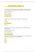 ATI.CHILD CARE 1.0 1 A child diagnosed with asthma begins corticosteroid treatments. The nurse explains to the parents that the purpose of corticosteroid treatment is to produce which therapeutic effect? Dilation of bronchial airways Decrease bronchospasms Prevention of infection Anti-inflammatory effect 2 Which is the recommended treatment for moderate to severe lead poisoning? IV fluids Antiemetics Heavy metal antagonist Antibiotics 3 Which treatment is a nursing priorit...