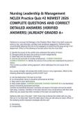 Nursing Leadership & Management NCLEX Practice Quiz #2 NEWEST 2026 COMPLETE QUESTIONS AND CORRECT DETAILED ANSWERS (VERIFIED ANSWERS) |ALREADY GRADED A+