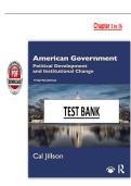 INSTANT PDF DOWNLOAD – Complete Test Bank for American Government: Political Development and Institutional Change, 12th Edition by Cal Jillson, covering Chapters 1–16. This comprehensive test bank includes exam-focused multiple-choice questions, analytical and critical-thinking items, and accurate answer keys, fully aligned with the textbook. Ideal for political science, government, public administration, and law students preparing for quizzes, assignments, midterms, and final exams. A relia...