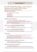 Bio 2301 Human Physiology - Lecture Exam 4 Questions and Answers (100% Correct Answers) Already Graded A+
