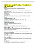 CE 391 Spring 2022 Final Exam Word Bank, CE 391 Final Exam