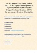 NR 605 Diagnosis & Management in Psychiatric-Mental Health Across the Lifespan Practicum – Midterm Exam 2025–2026 (Chamberlain) – Complete Exam Questions and Correct Answers