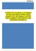 This document provides the fully updated and comprehensive test bank for Gerontologic Nursing, 6th Edition (Meiner, 2026). It includes all questions and answers for Chapters 1 through 29, covering foundational principles, aging physiology, chronic illness management, psychosocial considerations, safety, medication use in older adults, and evidence-based gerontologic practice. Each question is paired with the correct answer to support exam preparation and mastery of course content.