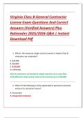 Ace your Virginia Class B General Contractor License Exam with this verified Q&A guide for 2025/2026. Includes 100+ practice questions, correct answers, and detailed rationales covering licensing requirements, contracts, safety standards, financial rules, and DPOR regulations. Designed for contractors preparing for certification, this instant‑download PDF ensures you understand exam topics and compliance essentials to succeed on test day.