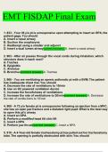 This document provides the complete EMT FISDAP Final Exam material, including practice questions, detailed answer keys, and rationales. It covers all major topics from the EMT curriculum, such as airway management, trauma assessment, medical emergencies, cardiology, obstetrics, and operations. Ideal for students preparing for the FISDAP readiness and comprehensive exams or the National Registry EMT (NREMT) certification. The questions reflect real exam format and difficulty, helping learners str...