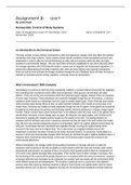This assignment was documented to a DISTINCTION standard and was one of four assignments that allowed me to earn a distinction as my final grade for the entire unit. This assignment goes into thorough detail about the nervous system; more specifically how the neurons that make up much of the nervous system actually works by the stimulation of action potentials through the movement of sodium-potassium ion channels. Furthermore, this assignment goes into detail about the cardiovascular system, inc...