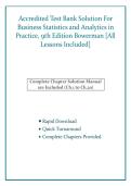 Business Statistics and Analytics in Practice, 9th Edition (Bowerman) exam preparation resource featuring exam-ready practice questions with verified answers. Covers statistical analysis, data interpretation, probability, regression, and analytics applications for business courses.