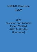 Questionans On this page, you find all documents, package deals, and flashcards offered by seller QuestionAns. 1188 Documents 0 Flashcards 0 Package deal Community 1 Followers 2 Following 1 Reviews received 0 0 1 0 0 2 months ago • ryannep3987 CDCES 2026 Mock Exam – Certified Diabetes Care and Education Specialist Practice Test 1188 items Everything Documents Flashcards Package deal Best sold Newest Rating NR 283 Pathophysiology Exam 1 Questions & Answers PDF | Nursing Study Guide & Test Prep (0) $8.49 0x sold Prepare effectively with the NR 283 Pathophysiology Exam 1 Questions & Answers PDF, a comprehensive study resource for nursing students. This document includes exam-style questions with accurate answers covering foundational pathophysiology topics such as disease mechanisms, cellular function, and body system disorders. Ideal for revision and self-assessment, this guide helps reinforce key concepts, improve exam performance, and build confidence for success in your NR 283 Exam 1 i x Exam (elaborations) • 7 pages • by QuestionAns • uploaded 2026 Quick View i x NR283 Pathophysiology • NR283 Pathophysiology NR 283 Pathophysiology Exam 2 Questions & Answers PDF | Nursing Study Guide & Test Prep (0) $9.99 0x sold Prepare effectively with the NR 283 Pathophysiology Exam 2 Questions & Answers PDF, a comprehensive study resource for nursing students. This document includes exam-style questions with accurate answers covering key pathophysiology concepts, including disease processes, body system disorders, and clinical implications. Ideal for revision and self-assessment, this guide helps reinforce understanding, improve exam performance, and build confidence for success in your NR 283 Exam 2. i x Exam (elaborations) • 11 pages • by QuestionAns • uploaded 2026 Quick View i x NR283 Pathophysiology • NR283 Pathophysiology NR283 Pathophysiology Exam 1 Review PDF | Nursing Study Guide & Exam Prep (0) $9.99 0x sold Prepare effectively with the NR283 Pathophysiology Exam 1 Review PDF, a comprehensive study resource for nursing students. This guide includes key concepts and review questions covering foundational pathophysiology topics, helping students understand disease processes and physiological changes in the body. Ideal for revision and self-assessment, it enhances knowledge retention, strengthens clinical reasoning, and builds confidence for success in your NR283 Exam 1. i x Exam (elaborations) • 10 pages • by QuestionAns • uploaded 2026 Quick View i x NR283 Pathophysiology • NR283 Pathophysiology NR283 Pathophysiology Week 2 eDapt Review PDF | Nursing Study Guide & Exam Prep (0) $9.99 0x sold Prepare effectively with the NR283 Pathophysiology Week 2 eDapt Review PDF, a focused study resource for nursing students. This document includes review questions and key concepts covering essential pathophysiology topics for Week 2, helping reinforce understanding of disease processes and body system functions. Ideal for revision and self-assessment, this guide helps improve knowledge retention, strengthen clinical reasoning, and build confidence for success in NR283 exams. i x Exam (elaborations) • 30 pages • by QuestionAns • uploaded 2026 Quick View i x NR283 Pathophysiology • NR283 Pathophysiology NREMT Practice Questions PDF | EMT National Registry Exam Prep & Study Guide (0) $9.99 0x sold Prepare effectively with the NREMT Practice Questions PDF, a comprehensive study resource for individuals preparing for the National Registry of Emergency Medical Technicians (NREMT) exam. This document includes realistic, exam-style questions with accurate answers covering key topics such as patient assessment, airway management, trauma care, and medical emergencies. Ideal for revision and self-assessment, this guide helps reinforce critical knowledge, improve exam performance, and build confid... i x Exam (elaborations) • 30 pages • by QuestionAns • uploaded 2026 Quick View i x NREMT • NREMT NURS 221 First Test Questions & Answers PDF | Nursing Fundamentals Exam Prep Guide (0) $9.99 0x sold Prepare effectively with the NURS 221 First Test Questions & Answers PDF, a comprehensive study resource for nursing students. This document includes exam-style questions with accurate answers covering foundational topics in nursing fundamentals, including patient care, safety, and basic clinical skills. Ideal for revision and self-assessment, this guide helps reinforce essential knowledge, improve exam performance, and build confidence for success in your NURS 221 exam. i x Exam (elaborations) • 22 pages • by QuestionAns • uploaded 2026 Quick View i x NURS 221 • NURS 221 ASL PDF | American Sign Language Study Guide & Vocabulary Practice (0) $9.99 0x sold Prepare effectively with the ASL PDF, a comprehensive study resource for learners of American Sign Language. This guide covers essential signs, vocabulary, and communication techniques to help build a strong foundation in ASL. Ideal for beginners and students, it supports practice, improves understanding, and enhances communication skills, making it a valuable resource for study, revision, and exam preparation. i x Exam (elaborations) • 52 pages • by QuestionAns • uploaded 2026 Quick View i x ASL • ASL Block 2 EMT Exam Questions & Answers PDF | EMT Certification Test Prep Guide (0) $9.99 0x sold Prepare effectively with the Block 2 EMT Exam Questions & Answers PDF, a comprehensive study resource for EMT students. This document includes exam-style questions with accurate answers covering key topics such as patient assessment, airway management, trauma care, and emergency response procedures. Ideal for revision and self-assessment, this guide helps reinforce essential knowledge, improve exam performance, and build confidence for success in your EMT training program. i x Exam (elaborations) • 15 pages • by QuestionAns • uploaded 2026 Quick View i x EMT • EMT Block 2 EMT Exam Questions & Answers PDF | EMT Certi