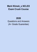 Questionans On this page, you find all documents, package deals, and flashcards offered by seller QuestionAns. 1188 Documents 0 Flashcards 0 Package deal Community 1 Followers 2 Following 1 Reviews received 0 0 1 0 0 2 months ago • ryannep3987 CDCES 2026 Mock Exam – Certified Diabetes Care and Education Specialist Practice Test 1188 items Everything Documents Flashcards Package deal Best sold Newest Rating Music Therapy Board Certification Exam 2026 | CBMT Study Guide & Practice Questions (0) $9.99 0x sold Prepare confidently for the Music Therapy Board Certification Exam (CBMT) with this comprehensive study guide designed for aspiring board-certified music therapists. This resource includes exam-style practice questions with verified answers and detailed coverage of essential topics such as music therapy assessment, treatment planning, clinical interventions, ethics, and professional practice standards, making it an essential tool for reinforcing knowledge, improving clinical reasoning, and succe... i x Exam (elaborations) • 43 pages • by QuestionAns • uploaded 2026 Quick View i x therapy • therapy Mark Klimek Yellow Book Guide 2026 | Complete NCLEX RN Review & Exam Preparation (0) $9.99 0x sold Prepare efficiently for the NCLEX-RN with the Mark Klimek Yellow Book Guide, a highly effective review resource designed to simplify complex nursing concepts and improve exam performance. This guide includes high-yield nursing notes, prioritization and delegation strategies, pharmacology tips, critical care concepts, and proven test-taking techniques, making it an essential study companion for reinforcing core knowledge, enhancing clinical reasoning, and confidently passing the NCLEX exam. i x Exam (elaborations) • 56 pages • by QuestionAns • uploaded 2026 Quick View i x Klimek • Klimek Mark Klimek NCLEX Exam Crush Course 2026 | Complete NCLEX RN Review & Study Guide (0) $9.99 0x sold Boost your NCLEX success with the Mark Klimek NCLEX Exam Crush Course, a comprehensive review resource designed to simplify complex nursing concepts and enhance exam readiness. This study guide includes high-yield notes, exam strategies, prioritization techniques, pharmacology tips, and critical nursing concepts essential for mastering the NCLEX-RN examination, making it an ideal last-minute review tool for reinforcing knowledge, improving clinical reasoning, and increasing confidence to pass th... i x Exam (elaborations) • 21 pages • by QuestionAns • uploaded 2026 Quick View i x Klimek • Klimek LPN – NCLEX-PN Exam 2026 | Complete Practical Nursing Study Guide & Practice Questions (0) $9.99 0x sold Prepare thoroughly for the LPN NCLEX-PN Exam with this comprehensive study guide designed to help practical nursing students succeed on their licensure examination. This resource features exam-style practice questions with verified answers and detailed explanations covering patient care, pharmacology, safety and infection control, medical-surgical nursing, maternal and pediatric care, and clinical decision-making, making it an essential tool for strengthening knowledge, improving test-taking con... i x Exam (elaborations) • 150 pages • by QuestionAns • uploaded 2026 Quick View i x Nclex • Nclex LPN NCLEX Exam 2026 | Complete NCLEX-PN Practice Test & Study Guide (0) $9.99 0x sold Prepare confidently for the LPN NCLEX Exam (NCLEX-PN) with this comprehensive study guide designed for practical nursing students seeking licensure success. This resource includes exam-style practice questions with verified answers covering essential nursing concepts such as patient care, pharmacology, safety, infection control, medical-surgical nursing, and clinical decision-making, making it an essential tool for reinforcing knowledge, improving critical thinking skills, and increasing your ch... i x Exam (elaborations) • 96 pages • by QuestionAns • uploaded 2026 Quick View i x Nclex • Nclex Relias Dysrhythmia Basic A Test 2026 | Cardiac Rhythm Practice & Study Guide (0) $9.99 0x sold Prepare effectively for the Relias Dysrhythmia Basic A Test with this comprehensive study guide, designed for healthcare professionals and students learning cardiac rhythm interpretation. This resource includes practice questions with verified answers, detailed explanations, and coverage of essential topics such as ECG basics, rhythm identification, common dysrhythmias, and clinical significance, making it an indispensable tool for reinforcing knowledge, improving test-taking skills, and confide... i x Exam (elaborations) • 6 pages • by QuestionAns • uploaded 2026 Quick View i x Relias dysrhythmia • Relias dysrhythmia ODP Contact Lens Pre-final Assessment 2 2026 | Optometric Dispensing Practice & Study Guide (0) $8.49 0x sold Prepare effectively for your ODP Contact Lens Pre-final Assessment 2 with this comprehensive study guide, designed for optometric dispensing students. This resource includes practice questions with verified answers, detailed explanations, and coverage of essential topics such as contact lens fitting, patient evaluation, lens care, and clinical assessment skills, making it an indispensable tool for reinforcing knowledge, improving practical skills, and confidently performing in pre-final and fina... i x Exam (elaborations) • 8 pages • by QuestionAns • uploaded 2026 Quick View i x ODP • ODP Low Pressure Boiler COF NY Exam 2026 | Complete New York Boiler Certification Study Guide (0) $9.99 0x sold Prepare effectively for the Low Pressure Boiler COF Exam in New York with this comprehensive study guide. This resource includes practice questions with verified answers, detailed explanations, and coverage of essential topics such as boiler safety, operation procedures, maintenance, and New York state regulations, making it an indispensable tool for reinforcing knowledge, improving practical skills, and confidently passing the Low Pressure Boiler COF NY Exam. i x Exam (elaborations) • 8 p