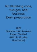 Questionans On this page, you find all documents, package deals, and flashcards offered by seller QuestionAns. 1188 Documents 0 Flashcards 0 Package deal Community 1 Followers 2 Following 1 Reviews received 0 0 1 0 0 2 months ago • ryannep3987 CDCES 2026 Mock Exam – Certified Diabetes Care and Education Specialist Practice Test 1188 items Everything Documents Flashcards Package deal Best sold Newest Rating MSF Basic Rider Course Test PDF | Motorcycle Safety Certification Study Guide (0) $9.99 0x sold Prepare effectively with the MSF Basic Rider Course Test PDF, a comprehensive study resource for individuals learning motorcycle safety and preparing for licensing exams. This document includes exam-style questions with answers covering key topics such as riding techniques, road safety, traffic laws, and hazard awareness. Ideal for revision and self-assessment, this guide helps reinforce essential riding knowledge, improve test performance, and build confidence for success in motorcycle safety c... i x Exam (elaborations) • 14 pages • by QuestionAns • uploaded 2026 Quick View i x MSF Basic Rider • MSF Basic Rider NAHQ CPHQ Practice Questions PDF | Healthcare Quality Certification Study Guide (0) $9.99 0x sold Prepare effectively with the NAHQ CPHQ Practice Questions PDF, a comprehensive study resource for individuals pursuing Certified Professional in Healthcare Quality (CPHQ) certification. This document includes exam-style practice questions with answers covering key topics such as quality improvement, patient safety, healthcare data analysis, and performance measurement. Ideal for revision and self-assessment, this guide helps reinforce essential healthcare quality concepts, improve exam performan... i x Exam (elaborations) • 2 pages • by QuestionAns • uploaded 2026 Quick View i x CPHQ • CPHQ NASCLA SC Exam Questions & Answers PDF | Contractor Licensing Study Guide & Test Prep (0) $9.99 0x sold Prepare effectively with the NASCLA SC Exam Questions & Answers PDF, a comprehensive study resource for individuals pursuing contractor licensing through the NASCLA program in South Carolina. This document includes exam-style questions with answers covering key topics such as construction management, safety regulations, project planning, and code compliance. Ideal for revision and self-assessment, this guide helps reinforce essential knowledge, improve exam performance, and build confidence for ... i x Exam (elaborations) • 13 pages • by QuestionAns • uploaded 2026 Quick View i x NASCLA SC • NASCLA SC NC Fuel Gas Code Exam Questions & Answers PDF | North Carolina Certification Study Guide (0) $9.99 0x sold Prepare effectively with the NC Fuel Gas Code Exam Questions & Answers PDF, a comprehensive study resource for individuals pursuing fuel gas certification in North Carolina. This document includes exam-style questions with answers covering key topics such as fuel gas systems, installation codes, safety standards, and regulatory compliance. Ideal for revision and self-assessment, this guide helps reinforce essential knowledge, improve exam performance, and build confidence for success in fuel gas... i x Exam (elaborations) • 25 pages • by QuestionAns • uploaded 2026 Quick View i x NC Fuel Gas Code • NC Fuel Gas Code NC Home Inspectors Test PDF | North Carolina Certification Study Guide & Exam Prep (0) $9.99 0x sold Prepare effectively with the NC Home Inspectors Test PDF, a comprehensive study resource for individuals pursuing home inspection certification in North Carolina. This document includes exam-style questions with answers covering key topics such as building systems, inspection procedures, safety standards, and regulatory requirements. Ideal for revision and self-assessment, this guide helps reinforce essential knowledge, improve exam performance, and build confidence for success in home inspector... i x Exam (elaborations) • 23 pages • by QuestionAns • uploaded 2026 Quick View i x NC Home Inspectors • NC Home Inspectors NC Pesticide Applicator Certification & Licensing Exam PDF | Study Guide & Test Prep (0) $9.99 0x sold Prepare effectively with the NC Pesticide Applicator Certification & Licensing Exam PDF, a comprehensive study resource for individuals seeking pesticide applicator certification in North Carolina. This document includes exam-style questions with answers covering key topics such as pesticide safety, application methods, environmental protection, and regulatory compliance. Ideal for revision and self-assessment, this guide helps reinforce essential knowledge, improve exam performance, and build c... i x Exam (elaborations) • 12 pages • by QuestionAns • uploaded 2026 Quick View i x NC PESTICIDE APPLICATOR • NC PESTICIDE APPLICATOR NC Plumbing Code, Fuel Gas & Business Exam Prep PDF | North Carolina Study Guide (0) $9.99 0x sold Prepare effectively with the NC Plumbing Code, Fuel Gas & Business Exam Prep PDF, a comprehensive study resource for individuals pursuing plumbing certification in North Carolina. This document includes exam-style questions with answers covering key topics such as plumbing codes, fuel gas systems, business practices, and regulatory compliance. Ideal for revision and self-assessment, this guide helps reinforce essential knowledge, improve exam performance, and build confidence for success in plum... i x Exam (elaborations) • 22 pages • by QuestionAns • uploaded 2026 Quick View i x NC Plumbing • NC Plumbing NC Plumbing License Exam Questions & Answers PDF | North Carolina Certification Study Guide (0) $9.99 0x sold Prepare effectively with the NC Plumbing License Exam Questions & Answers PDF, a comprehensive study resource for individuals pursuing plumbing certification in North Carolina. This document includes exam-style questions with answers covering key topics such as plumbing systems, codes and regulations, installation methods, and safety practices. Ideal for revision and self-assessmen