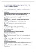 GAME DESIGN ALL POSSIBLE QUESTIONS AND ANSWERS SOLVED 100%