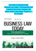 SOLUTION and ANSWER GUIDE for Business Law Today - The Essentials Text & Summarized 13th edition, by Roger LeRoy Miller, all Chapters 1- 25|newest edition 2024|2025