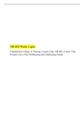 Quizplus On this page, you find all documents, package deals, and flashcards offered by seller QuizPlus. 575 Documents 0 Flashcards 52 Package deal Community 331 Followers 0 Following 53 Reviews received 23 10 9 2 9 1 year ago • bmills0409 NR 602 MIDTERM Exam, Chamberlain University NR 602: Primary Care of the Childbearing and Childrearing Family Practicum 1 year ago • kaylamcox NR 602 MIDTERM Exam, Chamberlain University NR 602: Primary Care of the Childbearing and Childrearing Family Practicum 2 year ago • dazubuike NR 602 MIDTERM Exam, Chamberlain University NR 602: Primary Care of the Childbearing and Childrearing Family Practicum 2 year ago • kelsih16 NR 602 MIDTERM Exam, Chamberlain University NR 602: Primary Care of the Childbearing and Childrearing Family Practicum 2 year ago • almontey NR 602 MIDTERM Exam, Chamberlain University NR 602: Primary Care of the Childbearing and Childrearing Family Practicum + Show more reviews 668 items Everything Documents Flashcards Package deal Best sold Newest Rating NR 602 WEEK 3 SICK CHILD CLINICAL CASE PRESENTATION, Chamberlain University NR 602: Primary Care of the Childbearing and Childrearing Family Practicum (0) $11.49 0x sold NR 602 WEEK 3 SICK CHILD CLINICAL CASE PRESENTATION, Chamberlain University NR 602: Primary Care of the Childbearing and Childrearing Family Practicum i x Exam (elaborations) • 205 pages • by QuizPlus • uploaded 2022 Quick View i x NR 602 • NR 602 NR 602 Week-6 Possible Questions, Chamberlain University NR 602: Primary Care of the Childbearing and Childrearing Family Practicum (0) $11.49 0x sold NR 602 Week-6 Possible Questions, Chamberlain University NR 602: Primary Care of the Childbearing and Childrearing Family Practicum i x Exam (elaborations) • 6 pages • by QuizPlus • uploaded 2022 Quick View i x NR 602 • NR 602 Final Test Bank Pediatric Primary Care 6th Edition Burns, Dunn, Brady, Secure HIGHSCORE (0) $20.49 0x sold Final Test Bank Pediatric Primary Care 6th Edition Burns, Dunn, Brady, Secure HIGHSCORE i x Package deal Exam (elaborations) • 170 pages • by QuizPlus • uploaded 2022 Quick View i x NR 602 • NR 602 NR 602 Final Exam, NR 602 Week 8 Final Exam (2 Versions) and Study guides, NR 602 -Primary Care of the Childbearing and Childrearing Family, Chamberlain College of Nursing, Secure Better Grades. • By  QuizPlus NR 602 Midterm Exam (Version 1), Chamberlain University NR 602: Primary Care of the Childbearing and Childrearing Family Practicum (0) $17.49 0x sold NR 602 Midterm Exam (Version 1), Chamberlain University NR 602: Primary Care of the Childbearing and Childrearing Family Practicum