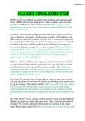 This document contains a comprehensive AHIP Final Exam 2022 study and test preparation resource, designed to help insurance agents confidently pass the AHIP Medicare Certification. It covers all core Medicare concepts including Parts A–D, Medicare Advantage, compliance, fraud/waste/abuse (FWA), and ethical marketing guidelines. Ideal for agents, brokers, and trainees preparing for AHIP certification or refresher training. Clear explanations, exam-style questions, and accurate content aligned w...