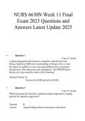 Access the NURS 6630N Week 11 Final Exam – converted, fully updated for 2026/2027. This resource provides comprehensive advanced nursing practice exam questions with verified answers and detailed rationales, covering core concepts, clinical decision-making, patient care management, and evidence-based practice applications. Designed for NURS 6630N students and advanced practice nursing candidates, this guide reinforces key concepts, strengthens test-taking skills, and ensures readiness for fina...