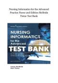 Access the Nursing Informatics for the Advanced Practice Nurse, 2nd Edition – McBride & Tietze Test Bank, fully updated for 2026/2027. This resource provides comprehensive nursing informatics practice questions with verified answers and detailed rationales, covering healthcare technology, clinical decision support systems, electronic health records, data management, and evidence-based informatics applications. Designed for advanced practice nursing students and informatics specialists, this gu...