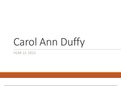 This is a powerpoint presentation about Carol ann duffy her life and analysis of some of her poetry.