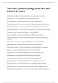 Test bank pharmacology solutions and correct answers Clinical pharmacology - correct answersStudy of drug-human interactions. Drug efficacy - correct answersExtent of intended drug effects. Pharmacokinetics - correct answersImpact of body on drug behavior. Pharmacotherapeutics - correct answersUse of drugs for diagnosis and treatment. Desired drug outcome - correct answersEnhances patient adherence to regimen. Ideal drug properties - correct answersPredictability, ease of adm...