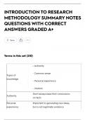 INTRODUCTION TO RESEARCH METHODOLOGY SUMMARY NOTES QUESTIONS WITH CORRECT ANSWERS GRADED A+