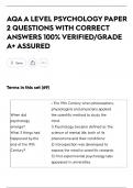 AQA A LEVEL PSYCHOLOGY PAPER 2 QUESTIONS WITH CORRECT ANSWERS 100% VERIFIED/GRADE A+ ASSURED