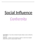 Full consolidation/study notes on the topic of social influence for year 1 A-level Psychology AQA. Talks about conformity, including the definitions and Asch's line study and Zimbardo's prison study. Then also contains obedience, including the factors that affect it and authoritarian personality, and Milgram's obedience study. There is also social change (like the snowball effect) and resistance to social influence (like locus of control),