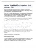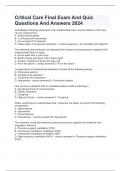Critical Care Final Exam And Quiz Questions And Answers 2024