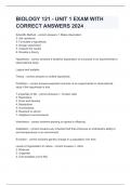 BIOLOGY 121 - UNIT 1 EXAM WITH CORRECT ANSWERS 2024