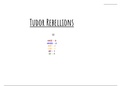 PowerPoint which details all of the rebellions faced by the Tudor Monarchs, including the dates, causes, solutions and individuals involved in each rebellion.