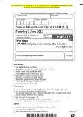 2025 Pearson Edexcel Level 1/Level 2 GCSE (9–1 Persian PAPER 1: Listening and understanding in Persian Higher Tier Exam Paper and marking scheme