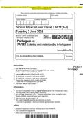 2025 Pearson Edexcel Level 1/Level 2 GCSE (9–1) Portuguese PAPER 1: Listening and understanding in Portuguese Foundation Tier Exam Paper and marking scheme