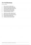 This is notes about the poem from John Milton, On His Blindness with sample questions and answers to those questions.