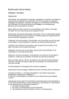 Samenvatting: Boekhouden voor het hbo deel 1. Hoofdstuk 1 t/m 8 en 11 De samenvatting bevat een begrippenlijst, formules en aantekeningen. Ook staan er tips in om het vak boekhouden onder de knie te krijgen. Naast bovenstaande onderdelen bevat deze samenvattingen balansen, grootboekrekeningen en toelichtingen.