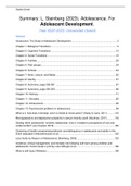Dit document bevat een complete samenvatting van alle voorbereidende literatuur voor het vak Adolescent Development. Deze is aangevuld in het blauw met college-aantekeningen en dus bevat het document de complete stof voor de tentamens van Adolescent Development. Het is geschreven in jaar 2022-2023.